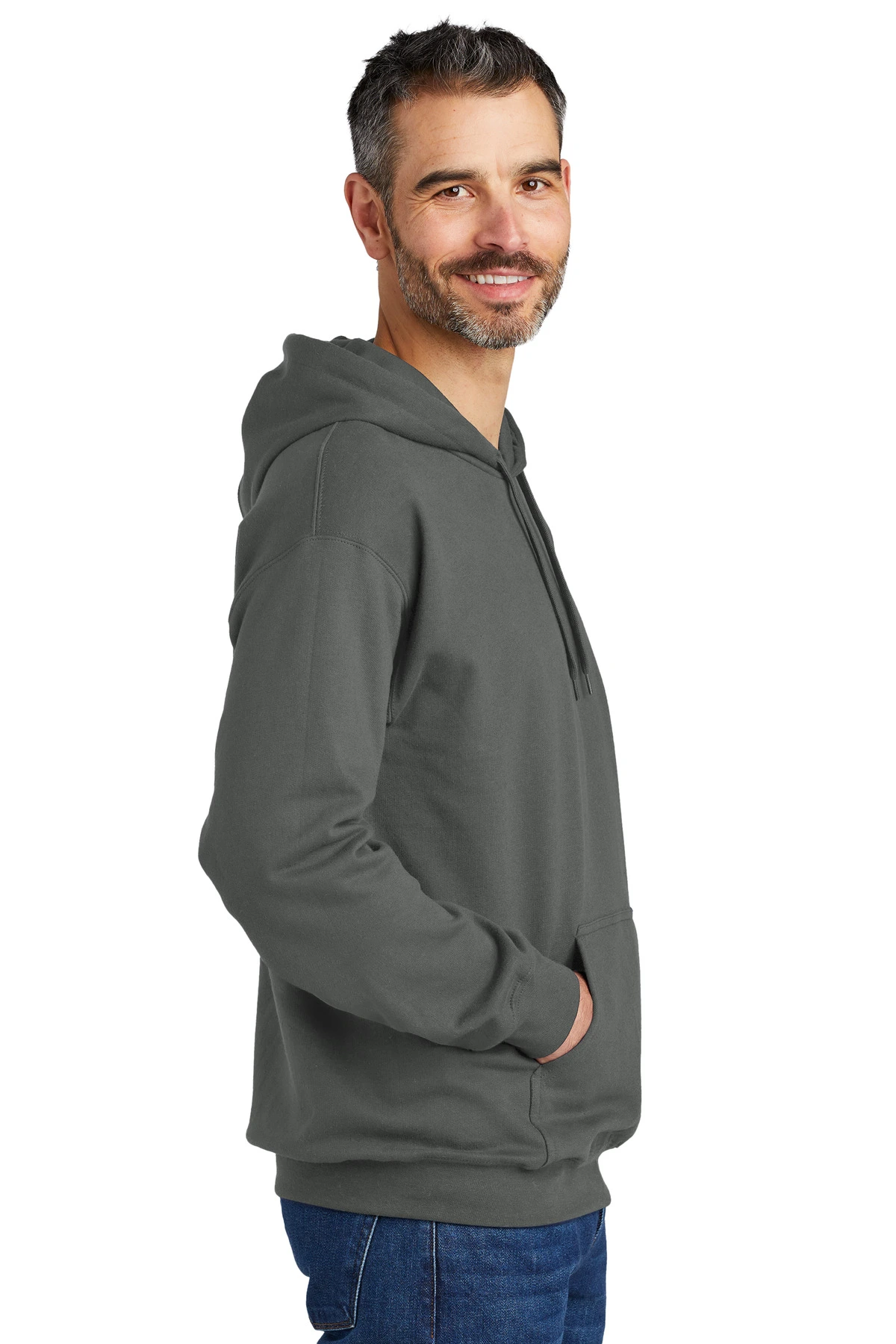 • 50/50 ring spun cotton/poly (Dark Heather)